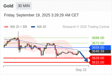 【Gold】Gold Intraday: key resistance at 3659.00.